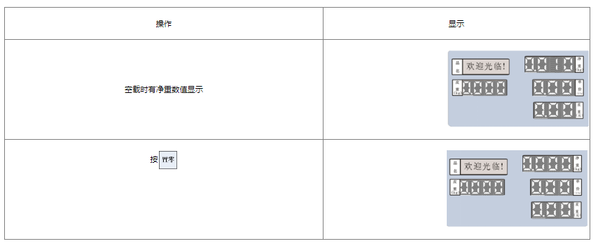 注:如有实际需要,如在秤盘上固定加一个轻质托盘,也可手动置零使电子秤恢复零位;手动置零范围一般为不超过满秤量的4%。